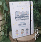 Exterior branco personalizado a cores em sublimação com tema desejado. Folhas lisas no interior. Não contêm esferográfica.
