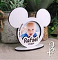 Lembrança em MDF de cerimónia personalizada com o formato das orelhas do Mickey Mouse.