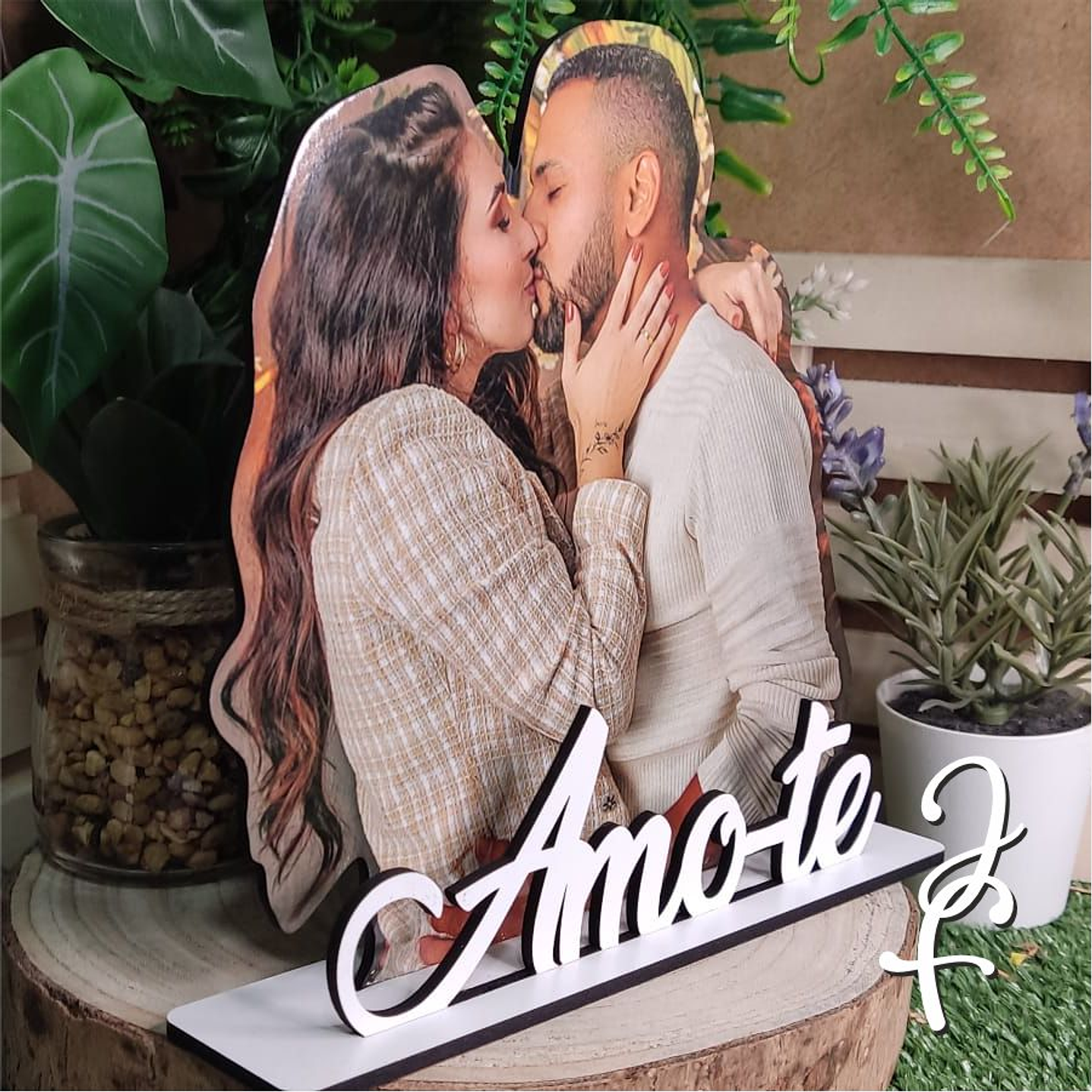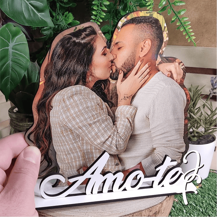 Una placa con una foto impresa y las palabras "Te amo", exclusivamente para el Día de San Valentín.