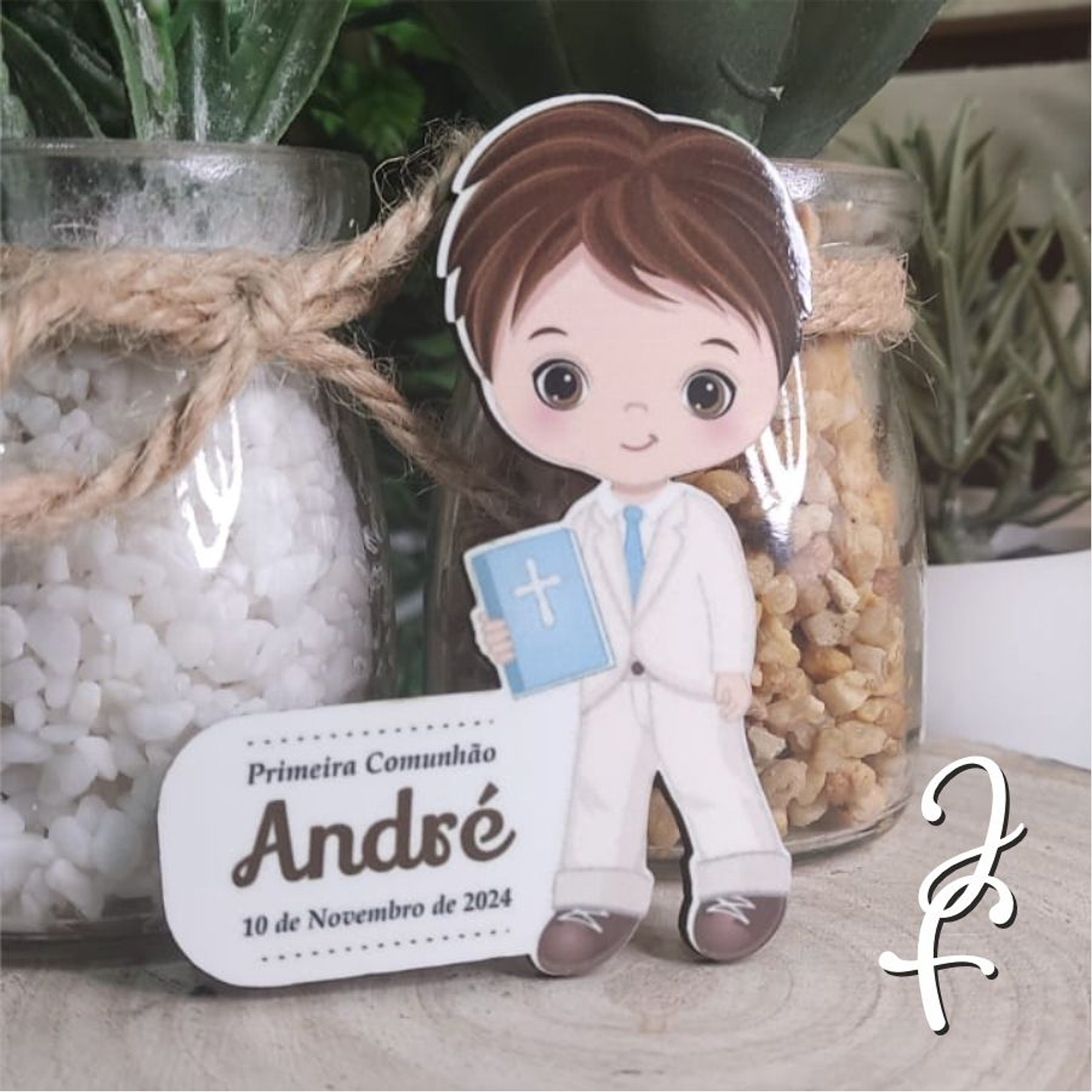 Lembrança de menino personalizada, MDF a cores com íman ou base.
