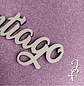 Escolha a cor de fundo em glitter e diga-nos o nome a gravar.