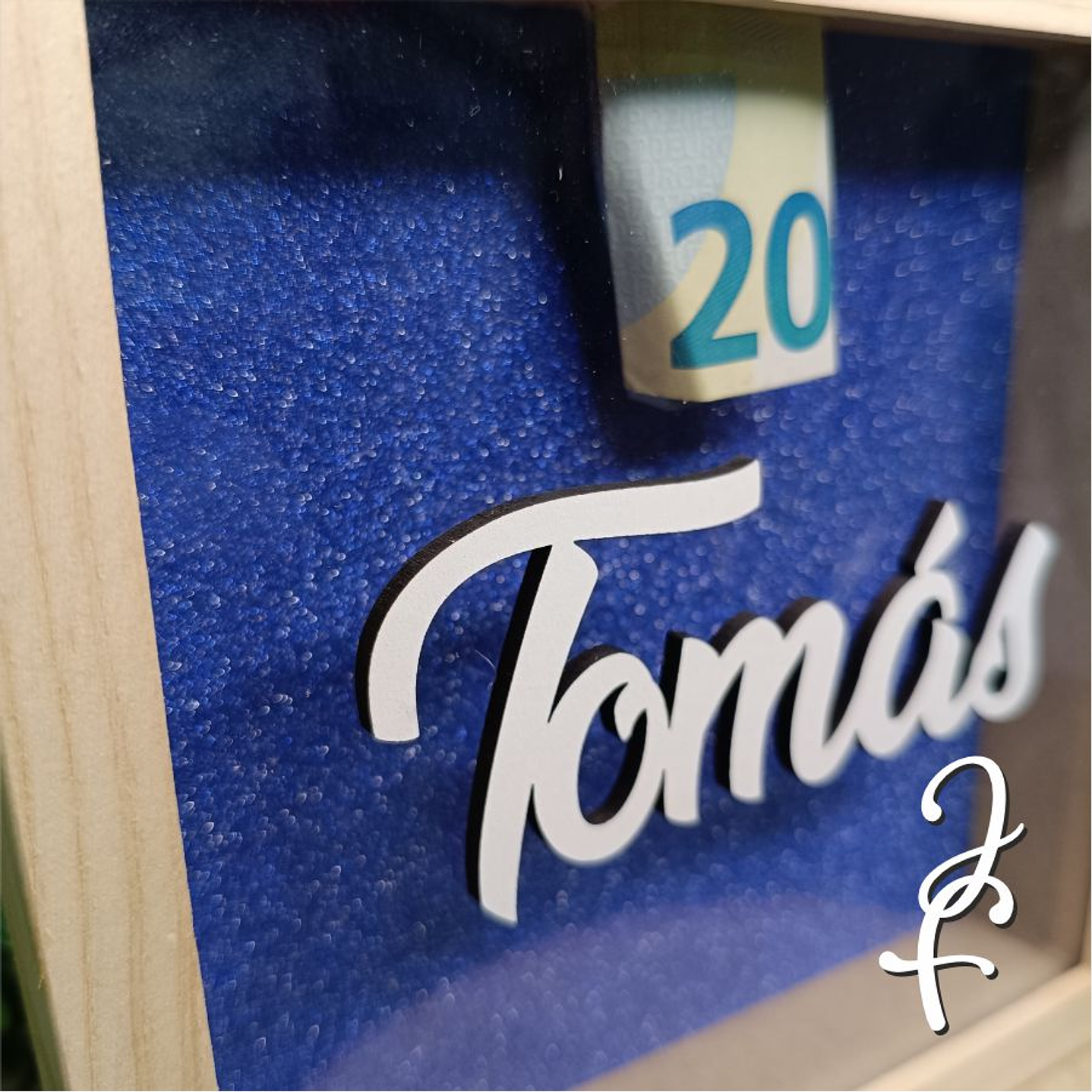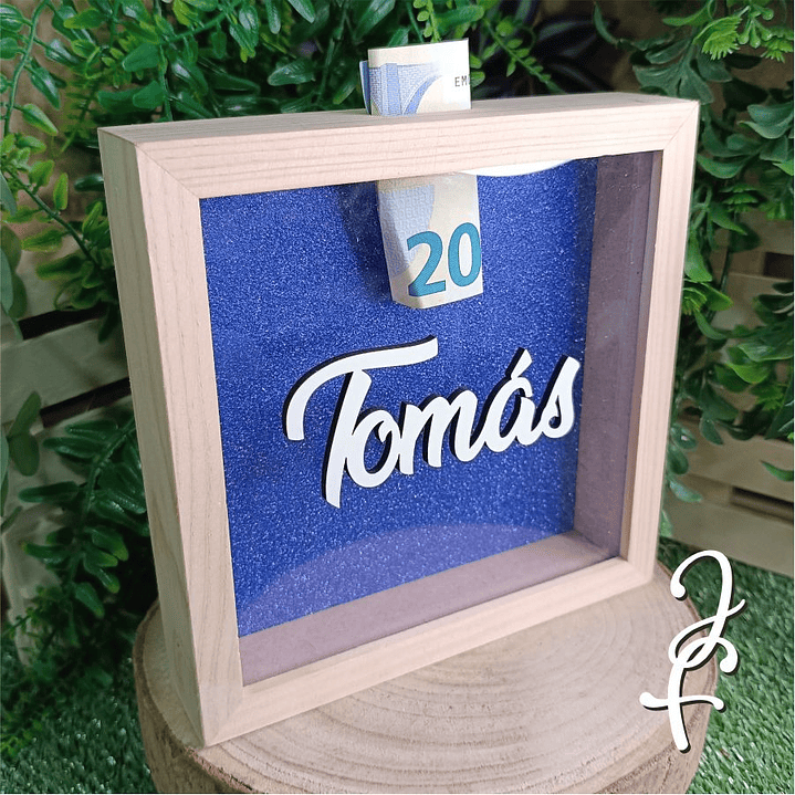 Mealheiro de Madeira com fundo em glitter e opção de nome aplicado no vidro.
