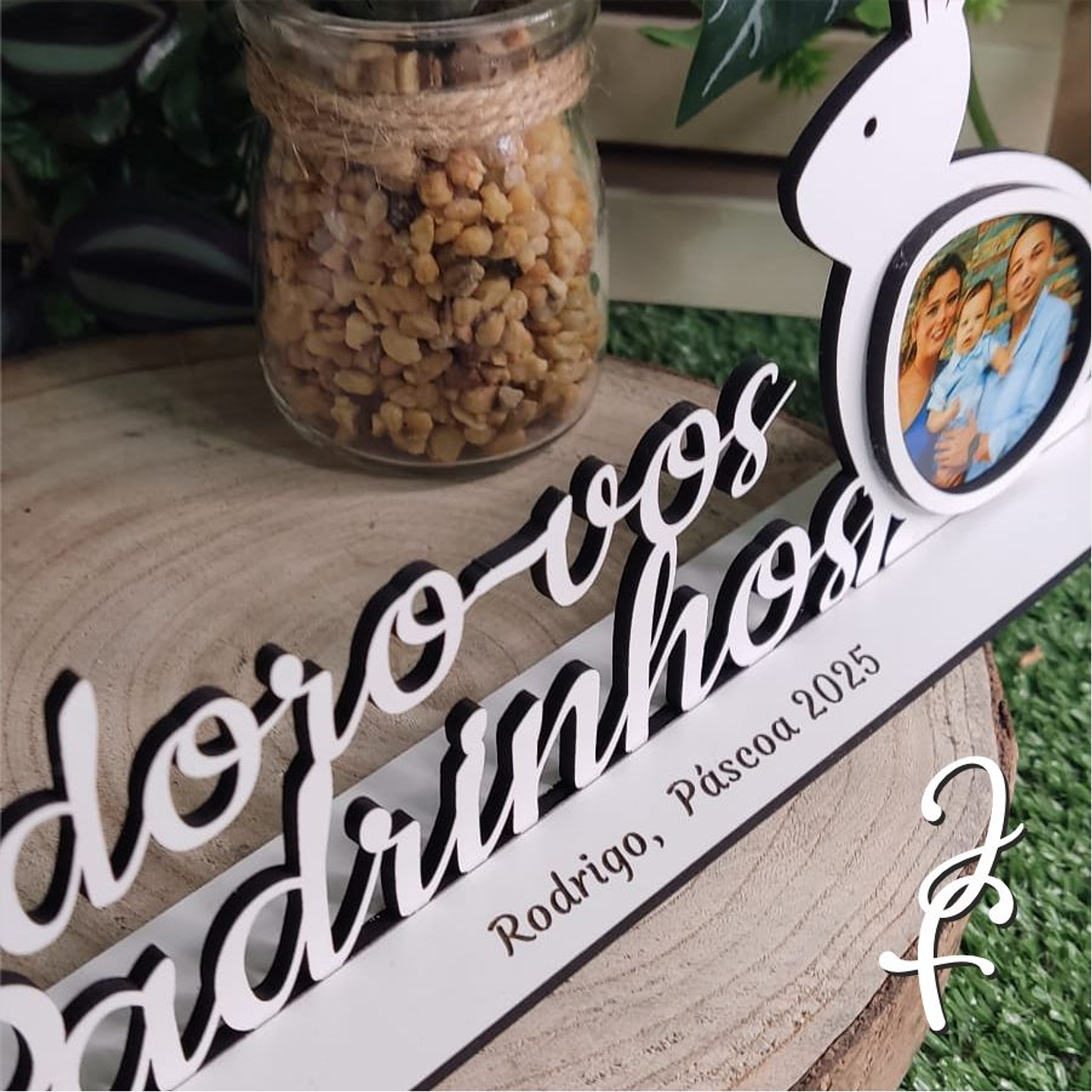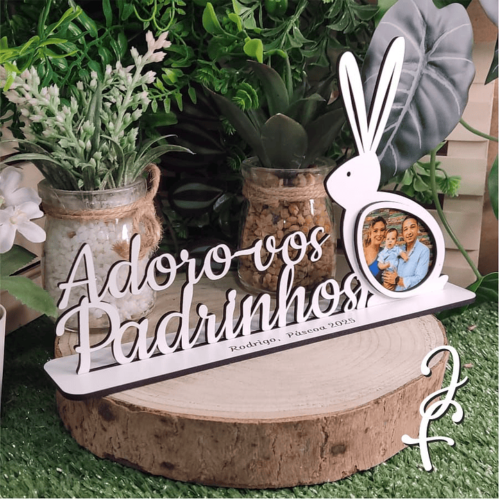 Moldura Adoro-vos Padrinhos personalizada com fotografia no coelho.