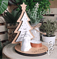 Presépio com figuras em gesso, vela, pinheirinho gravado com dedicatória e base gravado com nomes e votos.